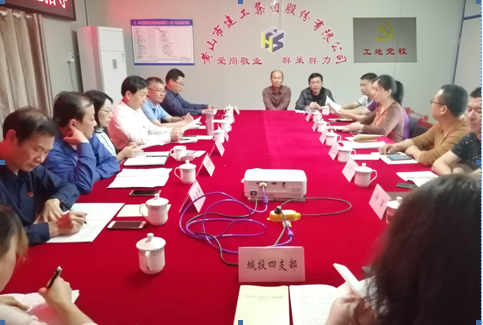 朱書記一行人員一到工地,就奔赴施工現場調研,并認真聽取了項目施工情況的介紹,他要求在確保安全的前提下要加大施工機械設備投入,加班加點,合理安排工序銜接,保質保量的加快施工進度,盡早為業(yè)主提供一個滿意的工程。隨后步入“工地黨?!边M行了交流座談,先后聽取了“工地黨?!苯M織情況介紹、項目建設情況介紹、項目施工情況介紹等。朱書記以《中國共產黨支部工作條例(試行)》為黨課內容進行了專題講座。