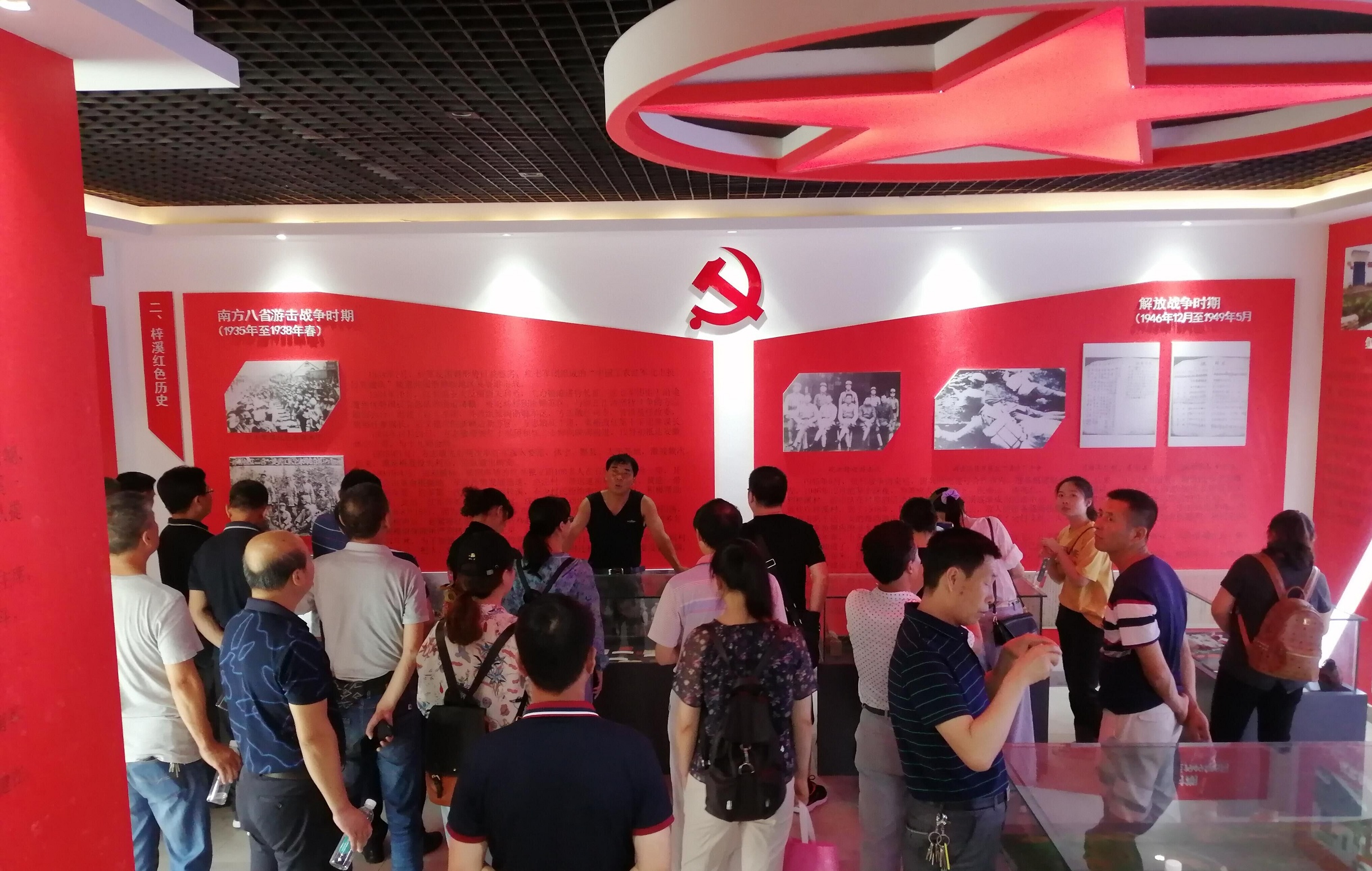 接著梓溪村民組組長、梓溪印記文化發(fā)展公司總經(jīng)理、黃山市人大代表汪躍良同志為我們講述了該村在板橋鄉(xiāng)黨委政府的大力支持下,著力做好一“紅”一“綠”兩篇文章,將美麗鄉(xiāng)村建設(shè)融入紅色旅游,挖掘紅色歷史,建成了紅色印記陳列館,把綠色生態(tài)環(huán)境和紅色人文景觀相結(jié)合,以美麗鄉(xiāng)村建設(shè)為依托,以紅色文化為主脈,打造屬于“紅色梓溪”革命傳統(tǒng)教育“新課堂”。
