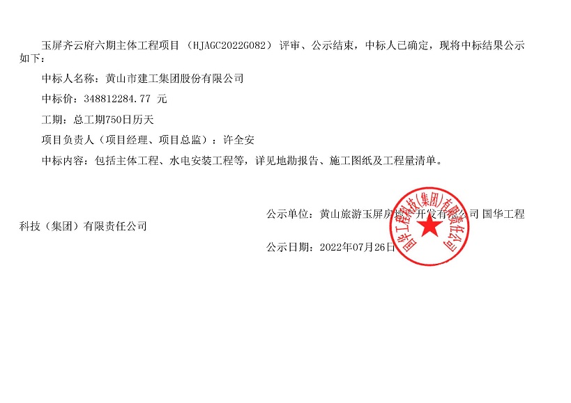 7月22日公司經(jīng)營一線再傳捷報,一舉中標(biāo)了至今為止我公司史上中標(biāo)的最大單位建筑項目--玉屏齊云府六期主體工程,總建筑面積約15.1萬平方米,總造價348812284.77 元,為公司贏得了良好的社會效益。
